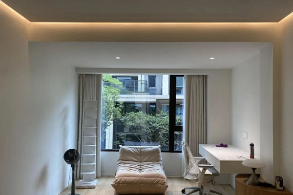 業主家是簡約化裝修,都以簡為美,流線弧形燈帶設計,簡約而不簡單,柔和的曲線 吸引眼球,為幾何美學鋪就視覺過渡,空間的情調無以復加.